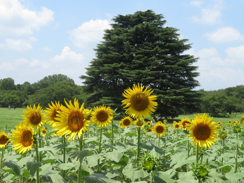 ひまわりも咲いてました。暑すぎるせいか、ガラガラでした。