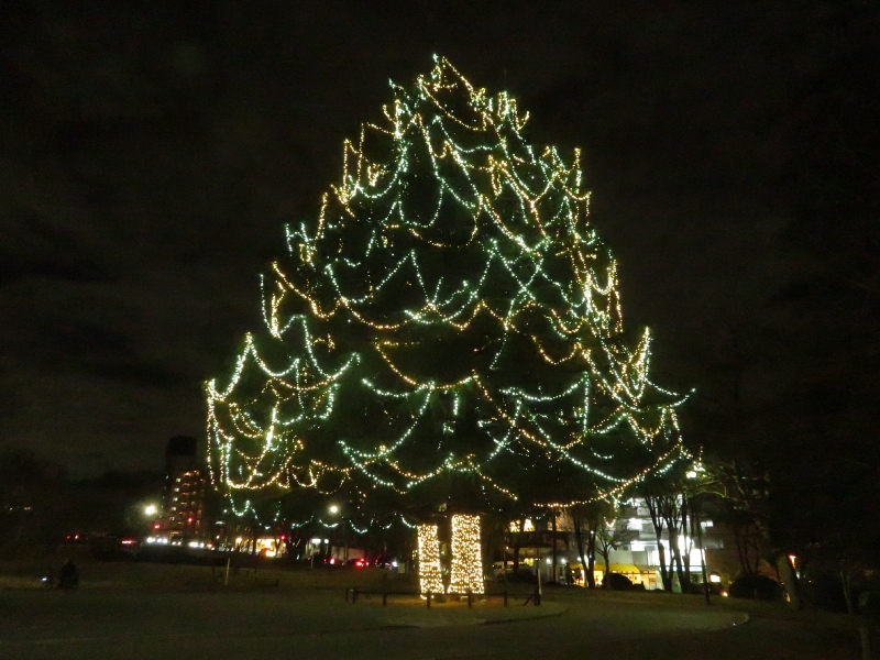 ジャンボクリスマスツリーがあります。街中にしては見事です。